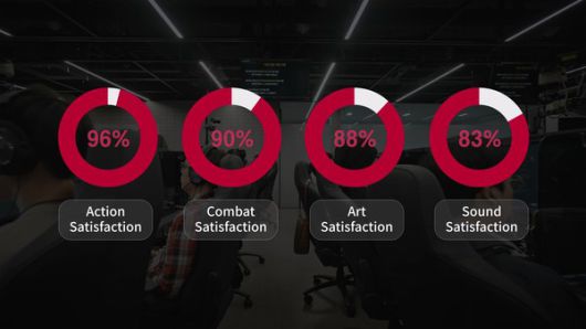 테스트 종료 이후 진행된 설문조사에서도 참가자들의 기대감을 엿볼 수 있었다. 대다수의 인원이 전체적인 재미에 대한 항목을 긍정적으로 평가했다. 또 액션과 전투 시스템에 대해 각각 96%, 90%가 긍정적으로 답변했다.