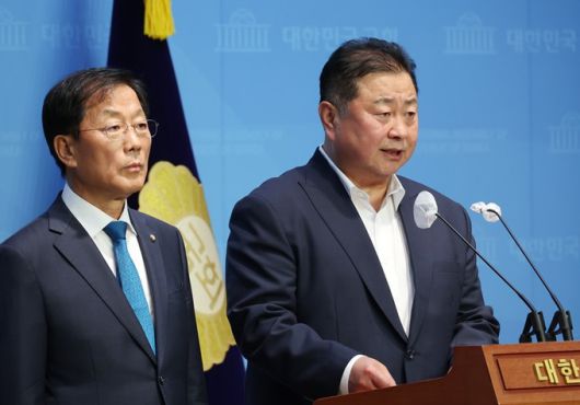 김경일 경기 파주시장(오른쪽)이 지난 20일 서울 여의도 국회에서 대북전단 살포와 오물풍선에 관한 기자회견을 하고 있다. 연합뉴스 |