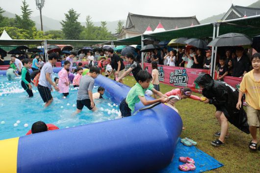 지난 21일부터 23일까지 고창 선운산도립공원에서 펼쳐진 '풍천장어와 함께하는 제21회 고창 복분자와 수박축제', 굳은 날씨 속에서도 축제장의 많은 관광객들이 맨손장어잡기 체험에 참여해 즐기고 있는 모습. *재판매 및 DB 금지 |