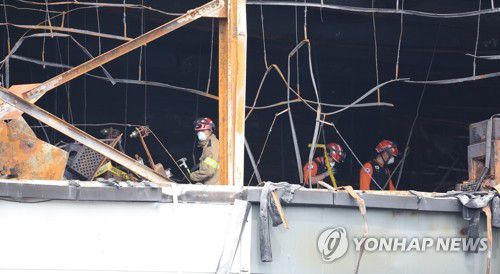 (화성=연합뉴스) 강영훈 권준우 기자 = 지난 24일 30명의 사상자를 낸 경기 화성시 일차전지 업체 아리셀 공장의 화재 현장에 대한 내부 수색 과정에서 신원불상의 시신 일부가 추가로 발견됐다.