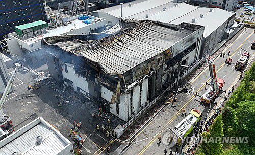 화성 일차전지 제조 업체 화재 현장 |