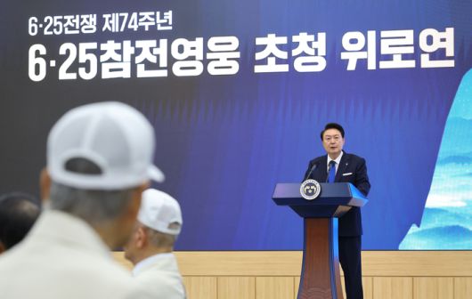행사 후에는 부인 김건희 여사와 함께 참전유공자들을 위한 위로연을 가졌다. 윤 대통령은 “영웅들의 희생과 헌신을 모든 국민들이 영원히 기억하고, 영웅들께서 합당한 존중과 예우를 받는 보훈 문화를 확산해 나가는 데도 최선을 다하겠다”고 말했다.