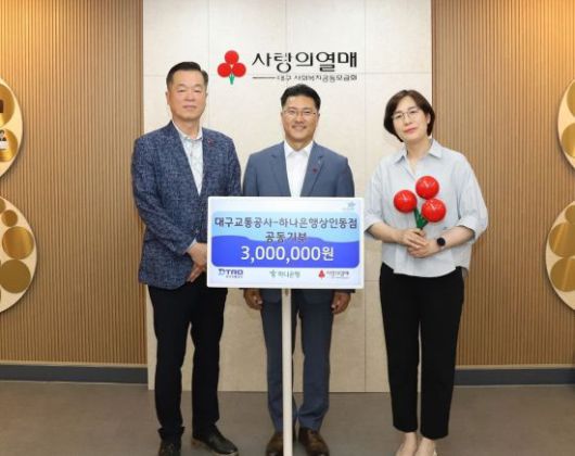 대구교통공사는 하나은행 상인동지점과 공동으로 사랑의열매 대구사회복지공동모금회를 방문해 300만원을 기부했다고 25일 밝혔다.
