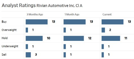 한편 월가에서 리비안에 대해 투자의견을 제시한 애널리스트는 총 28명으로 이 중 15명(54%)이 매수(비중확대 및 시장수익률 상회 등 포함) 의견을 유지하고 있다. 평균 목표주가는 14.63달러로 이날 종가보다 22.3% 높다.
