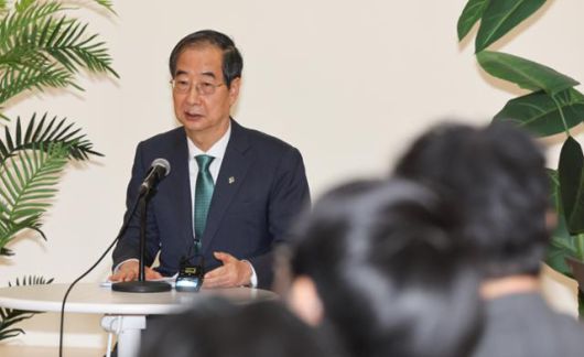 한덕수 국무총리가 26일 정부서울청사 별관에서 열린 출입기자단 백브리핑에서 인사말을 하고 있다. 뉴스1 |