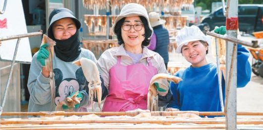 쿠팡 마켓플레이스 입점으로 경영난을 극복한 성신수산의 고신순 대표(가운데)와 직원들 모습. 입점 이후 매출이 2배 이상 올랐다. [사진 쿠팡] |