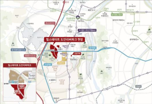 한편, 대전광역시 유성구 학하동 일원 도안2-2지구에 들어서는 힐스테이트 도안 리버파크는 총 5개 단지, 지하 2층~지상 최고 35층, 총 51개 동, 5,329가구 규모이며, 1단지(5블록, 1,124가구)와 2단지(4블록, 1,437가구) 2,561가구가 1차로 공급된다. 이중 임대를 제외하고 1단지(5블록, 891가구), 2단지(4블록, 1,222가구) 2,113가구를 7월에 일반분양한다. 견본주택은 대전광역시 서구 도안동 일원(목원대학교 인근)에 개관할 예정이다.