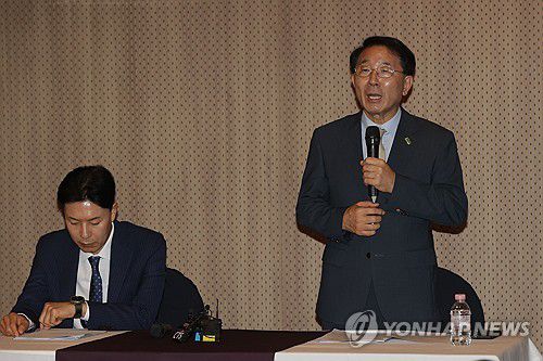 (서울=연합뉴스) 강민지 기자 = 김종생 NCCK 총무가 27일 오전 서울 서대문구 연세대 최영홀에서 열린 '한국기독교교회협의회(NCCK) 100주년 기념사업설명 기자회견'에서 인사말을 하고 있다. 2024.6.27