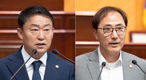 김 의장은 재적 의원 23명 가운데 22명이 참석한 투표에서 찬성 20표를, 서 부의장은 찬성 17표를 각각 얻었다.