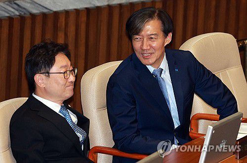 본회의 참석한 조국 대표 |