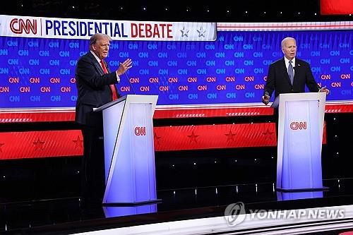 (워싱턴=연합뉴스) 강병철 특파원 = 조 바이든 미국 대통령과 도널드 트럼프 전 대통령은 27일(현지시간) 첫 대선 TV 토론에서 이민 정책 문제를 놓고 정면으로 대립했다.