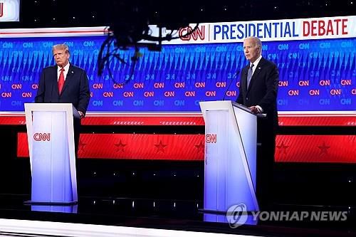 (워싱턴=연합뉴스) 강병철 특파원 = 조 바이든 미국 대통령과 도널드 트럼프 전 대통령은 27일(현지시간) 첫 대선 TV 토론에서 기후 위기에 대응한 정책을 놓고도 정면으로 대립했다.