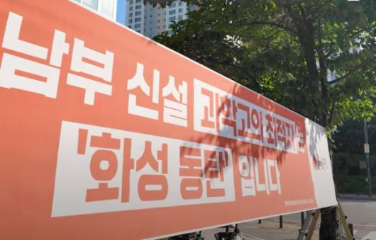 이 의원은 지난 26일 자신의 유튜브 채널을 통해 경기도교육청 인근에 현수막을 직접 설치하는 모습을 공개했다. 이 의원이 설치한 현수막에는 '경기 남부 신설 과학고의 최적지는 화성 동탄입니다'라는 문구가 담겼다.