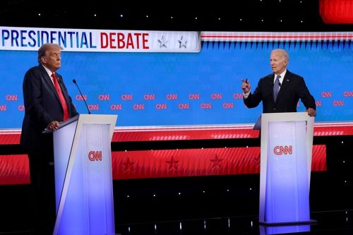 오는 11월 미 대선에서 재대결하는 바이든 대통령과 트럼프 전 대통령은 이날 CNN방송이 조지아주 애틀랜타에서 주최한 토론회에서 맞붙었다. 전·현직 대통령이 대선 토론회에 나란히 등장한 것은 미 역사상 처음이다.