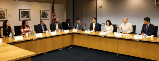 유인촌 문화체육관광부 장관이 28일(현지시간) 미국 로스앤젤레스 미국 배우·방송인 조합(SAG-AFTRA) 회관을 방문해 프란 드레셔 회장을 비롯한 관계자들과 간담회를 하고 있다(사진=문체부 제공). |