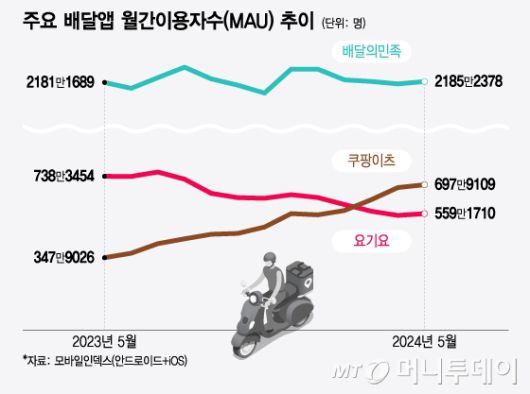 주요 배달앱 월간이용자수(MAU) 추이/그래픽=윤선정 |