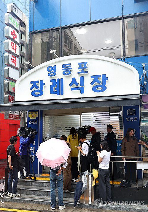 (서울=연합뉴스) 김도훈 기자 = 2일 오후 전날 발생한 서울 시청역 인근 교통사고 희생자들이 안치된 서울 영등포구 영등포병원 장례식장 앞에서 취재진이 대기하고 있다. 2024.7.2