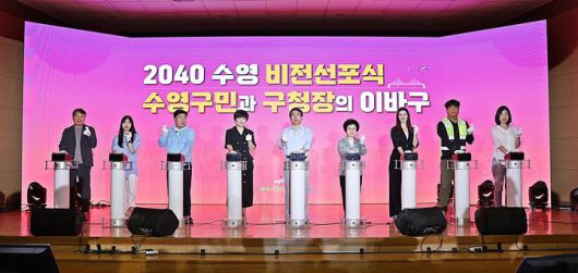 이어 수영구는 '2040 수영 비전선포식'을 열고 미래 수영구의 비전을 소개했으며, 강성태 구청장은 수영구민과 대화의 만남 등을 진행했다.