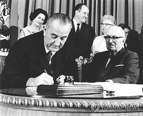 (서울=연합뉴스) 이신영 기자 = 미국 민주당 현역 의원이 처음으로 조 바이든 대통령의 재선 포기를 공개적으로 요구하고 나선 가운데 과거 대선 레이스를 중도사퇴했던 린든 존슨 전 대통령의 사례가 주목받고 있다.