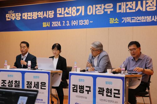 이번 토론회는 민주당 장철민 의원(동구)이 진행을 맡아 정세은 충남대 교수, 김병구 변호사(대전참여연대 대표), 조성칠 전 대전시의원이 패널로 참여해 다양한 관점에서 민선8기 시정 성과와 과제를 논의했다.