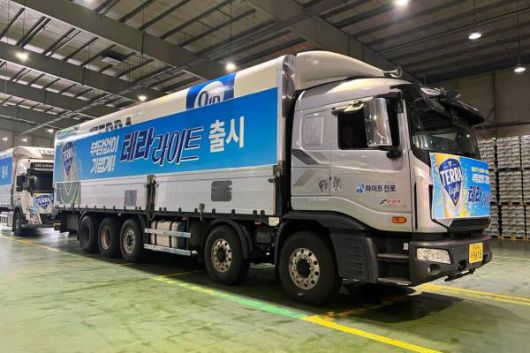 하이트진로 맥주 신제품 '테라 라이트'가 3일 하이트진로 전주공장에서 첫 출고되는 모습 [사진=하이트진로] |