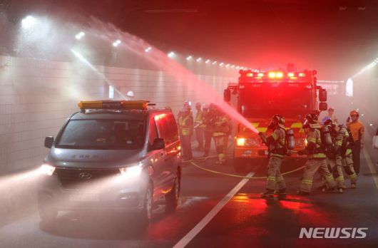 소방당국은 현장에 출동해 신고 차량을 살핀 뒤 터널 밖으로 이동하도록 조처했다.