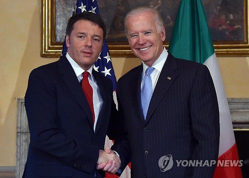 2015년 11월 악수하는 마테오 렌치(왼쪽)와 바이든 |