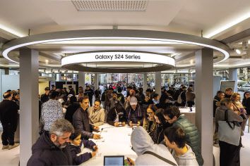올해 2월 25일(현지시간) 스페인 바르셀로나 카탈루냐 광장에서 문을 연 ‘갤럭시 익스피리언스 스페이스’에서 관람객들이 갤럭시 S24 시리즈를 체험하고 있다. [삼성전자 제공] |