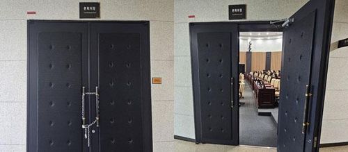 본회의장 출입문 폐쇄 전(왼쪽)과 후(오른쪽) |