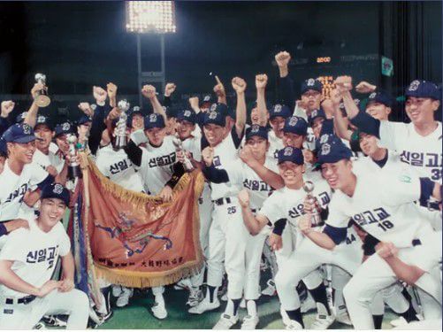 1997년 청룡기 고교야구선수권대회에서 우승한 신일고 야구부./조선일보DB |