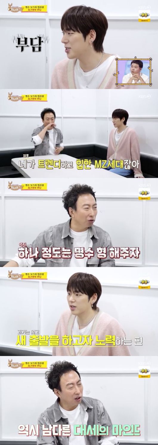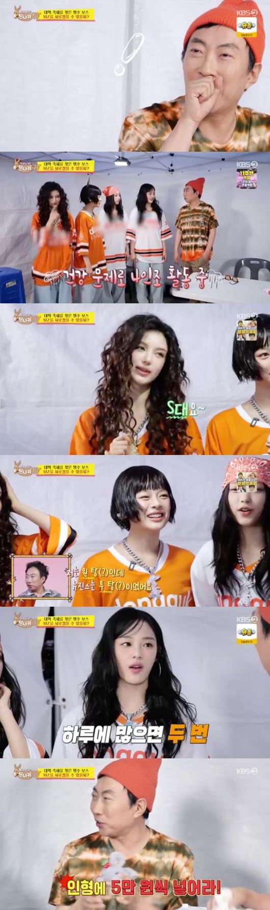 7일 오후에 방송된 KBS 2TV 예능프로그램 ‘사장님 귀는 당나귀 귀’에서는 대학교 축제에서 뉴진스를 만난 박명수의 모습이 그려졌다. 박명수는 축제 무대에 서기 전 지코를 만나서 분위기를 띄우는 방법을 묻는 등 MZ세대와 소통하기 위해서 노력했다.