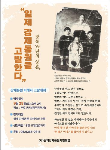 일제 강제 동원 피해자 또는 유족이라면 누구나 대회에 참가할 수 있고, 다음 달 11일까지 일제강제동원시민모임에 유선으로 참가 신청을 하면 된다.