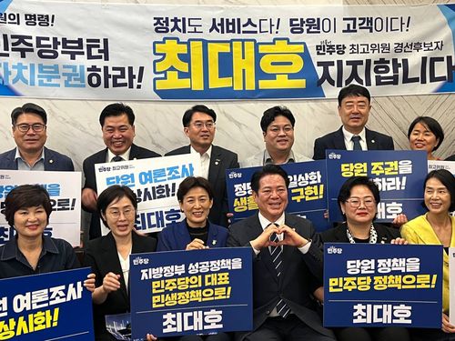 앞서 최 시장은 광주시 5개 구의 의원들을 만나 "56조에 이르는 사상 최악의 세수 결손으로 지방정부를 위기에 빠뜨리는 윤석열 정부의 폭정에 맞설 지방정부 리더로서 최고위원에 도전했다. 도와달라"고 요청했다.