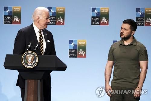 작년 7월 나토 정상회의 기간 나란히 선 바이든과 젤렌스키 |