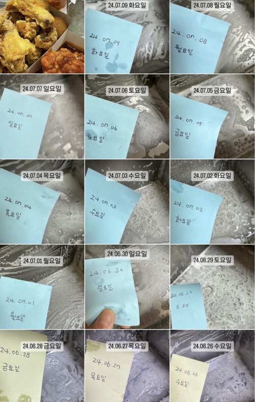 광주광역시의 한 치킨집 주인이 매일 치킨 기름통 세척 후 찍은 사진을 소셜미디어(SNS)에 올려 화제를 모았다. 사진은 인스타그램에 올라온 인증 사진들. 인스타그램 캡처