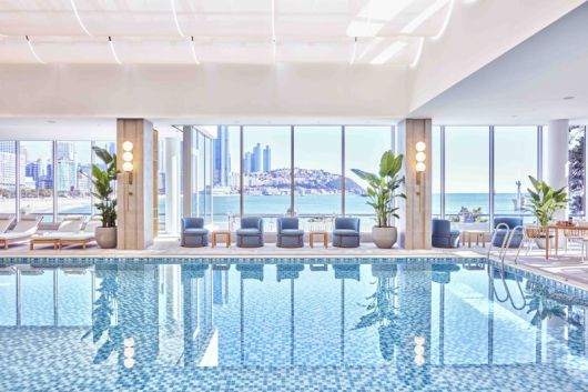 수영장은 탁 트인 해운대 바다를 더욱 아름답게 감상할 수 있는 야외 테라스 공간에서 여유로운 휴양지의 편안함을 느낄 수 있으며 실내 공간 내 천장의 차양은 자연 채광과 은은한 실내 조명이 적절한 조화를 이뤄 휴식에 최적화된 무드를 완성했다.