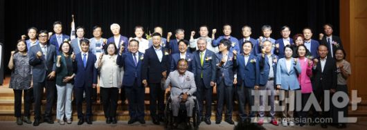 10일 5·18기념문화센터에서 열린 5.18민주화운동부상자회 조규연 신임 회장 취임식에서 취임식 후 기념촬영을 하고 있다.▲ⓒ광주광역시 |