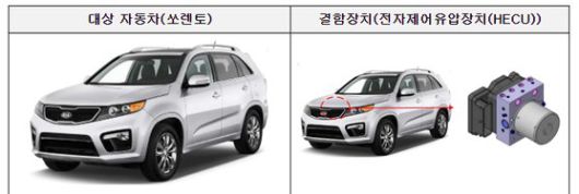 기아의 쏘렌토 13만9478대는 전자제어유압장치(HECU) 내구성 부족으로 인해 화재가 발생할 가능성이 있어 15일부터 시정조치에 들어간다.