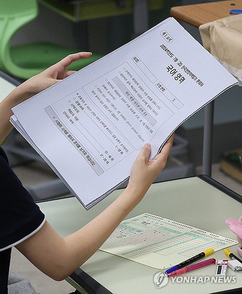 (대구=연합뉴스) 윤관식 기자 = 2024학년도 7월 고3 전국연합학력평가가 실시된 11일 오전 대구 중구 경북여자고등학교 3학년 교실에서 수험생들이 시험 준비를 하고 있다. 2024.7.11