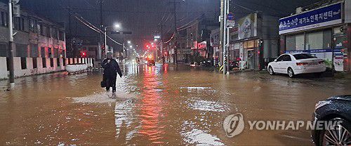 폭우로 물에 잠긴 군산 시내 |