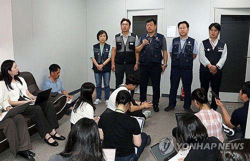 기자들 질문에 답하는 최저임금위 민주노총 위원들 |