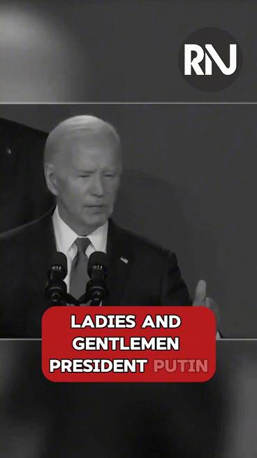 바이든 대통령은 이날 워싱턴 D.C. ‘월터 E. 워싱턴 컨벤션 센터’에서 나토 정상회의의 일환으로 열린 우크라이나 지원 협약 행사에서 인사말을 한 뒤 옆에 있던 볼로디미르 젤렌스키 우크라이나 대통령에게 마이크를 넘기면서 “신사·숙녀 여러분, 푸틴 대통령”이라고 말했다.