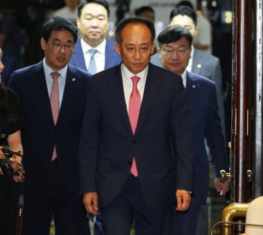 TK지역 3선 출신인 추 원내대표는 윤석열 정부의 초대 경제부총리 겸 기획재정부 장관이었다. 빠른 업무 처리 능력 외에도 특유의 여유와 웃음기 등으로 기재부 직원들이 ‘닮고 싶은 상사’ 1위로 두 차례나 뽑은 그지만, 최근 국회에서는 대야 투쟁 ‘강경파’로 분류된다.