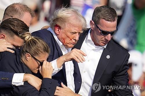 총격 당한 트럼프 전 미국 대통령을 대피시키는 경호요원들 |