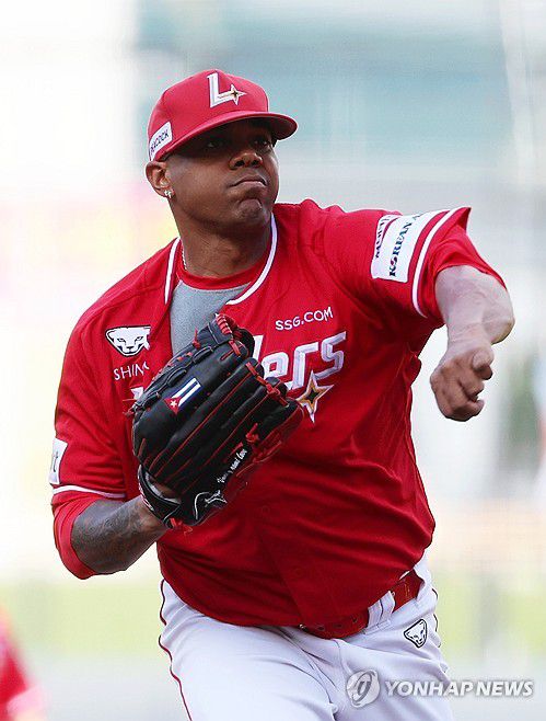 (광주=연합뉴스) 조남수 기자 = 14일 광주기아챔피언스필드에서 열린 프로야구 SSG 랜더스와 KIA 타이거즈의 경기. SSG 선발투수 엘리아스가 1회에 투구하고 있다. 2024.7.14