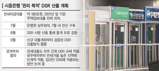 15일 금융권에 따르면 시중은행들은 이달 초부터 관리목적 DSR 산출을 위해 은행권 실무회의를 갖고 운영방안을 마련 중이다. 이르면 이달 전산을 구축하고, 8월에 DSR 시범 산출 방식을 운영한 후에 9월부터는 신규 대출계좌부터 검증된 DSR 방식을 활용할 예정이다. 이는 예·적금담보대출과 같이 소득 증빙이 필수가 아니었던 대출 계좌에 대해서도 DSR 비율을 산출해 '차주들의 정확한 상환능력'을 파악·관리하기 위한 조처다.
