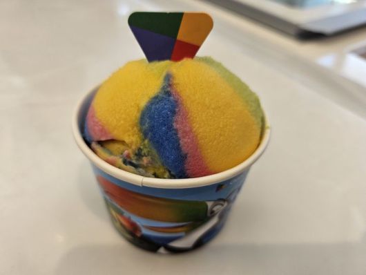 배스킨라빈스 연구원들이 '제미나이'에 구글플레이의 4가지 로고 컬러에 어울리는 원료를 질의 응답하는 과정을 반복해 만들어졌다.