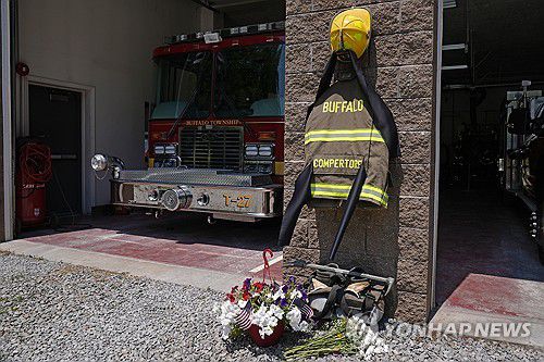총격 희생자 추모 공간에 놓인 꽃 |