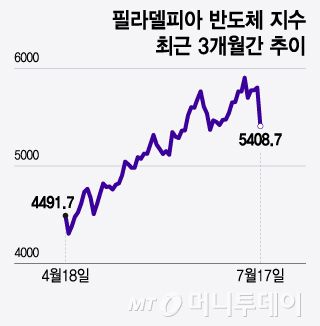 필라델피아 반도체 지수 최근 3개월간 추이/그래픽=윤선정 |