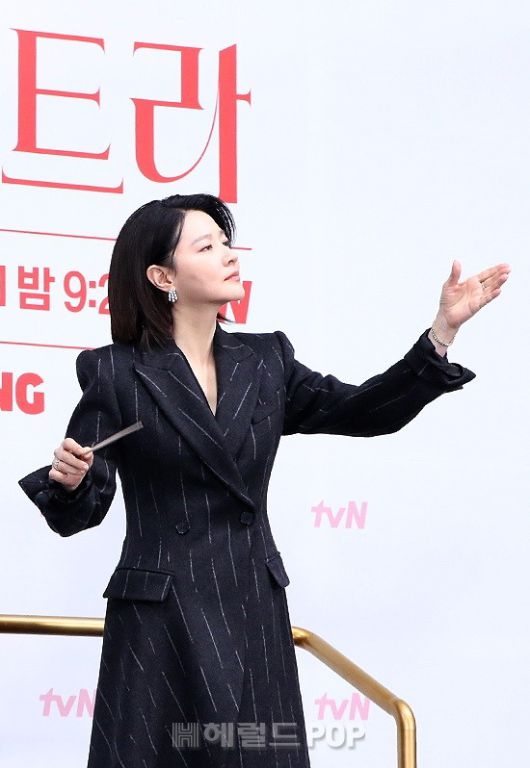 [헤럴드POP=민선유 기자]배우 이영애가 6일 오전 서울 구로구 신도림 라마다 호텔에서 열린 tvN 토일드라마 '마에스트라' 제작발표회에 참석해 포토타임 촬영에 임하고 있다.